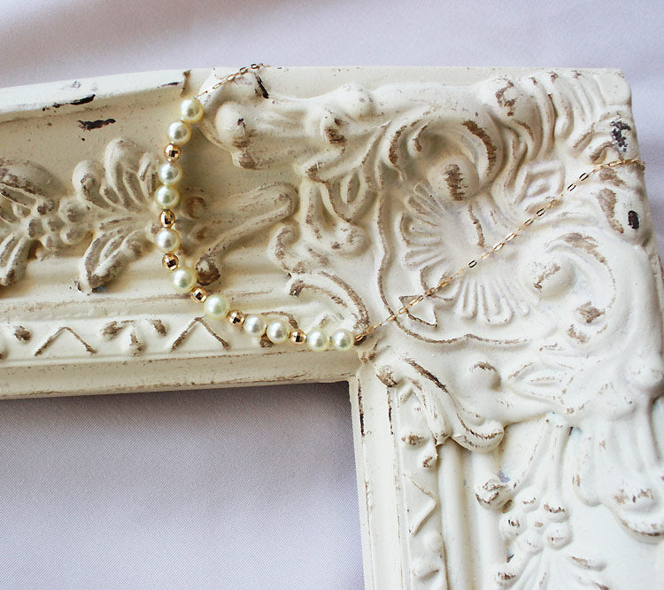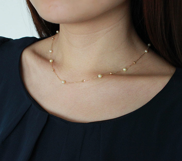 あこや真珠 海水真珠 K18YG【アコヤ真珠】【ナチュラルゴールド】ベビーパール ミラーボール ステーションネックレス【パールスライド】【特許番号】特許第6805455号