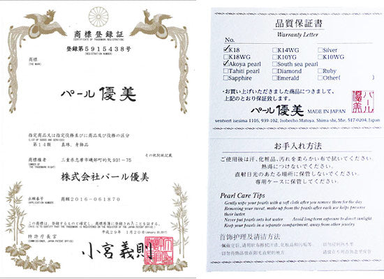 ●真珠は炭酸カルシウムが主成分であるため、汗が付いたまま放置もしくは保管すると塩分との化学反応が緩やかに発生し、真珠特有の光沢が失われます。このため、着用もしくは使用後早めに柔らかい布で拭くなどの手入れが大切です。