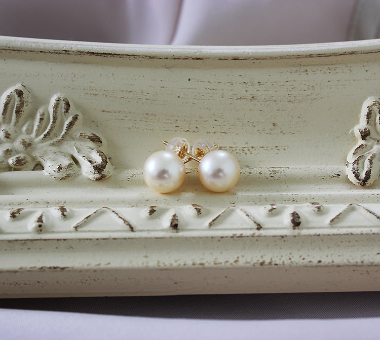 あこや真珠 ナチュラルクリーム 8.0-8.5mm K18【イエローゴールド】 or K14WG【ホワイトゴールド】 ピアスまたはイヤリング 一粒 シンプル おしゃれ